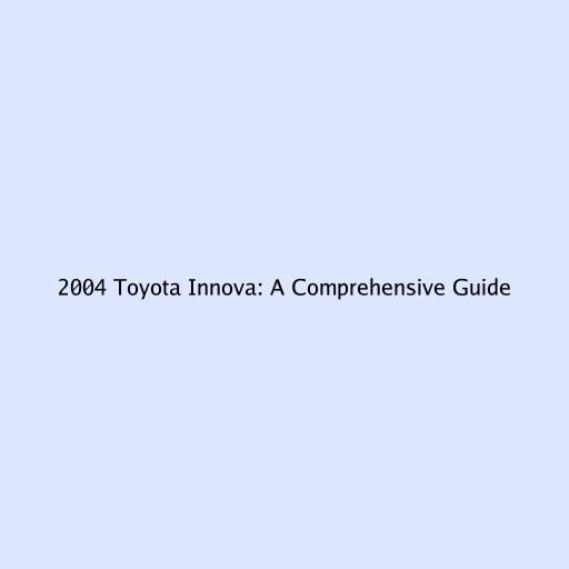 2004 Toyota Innova: A Comprehensive Guide