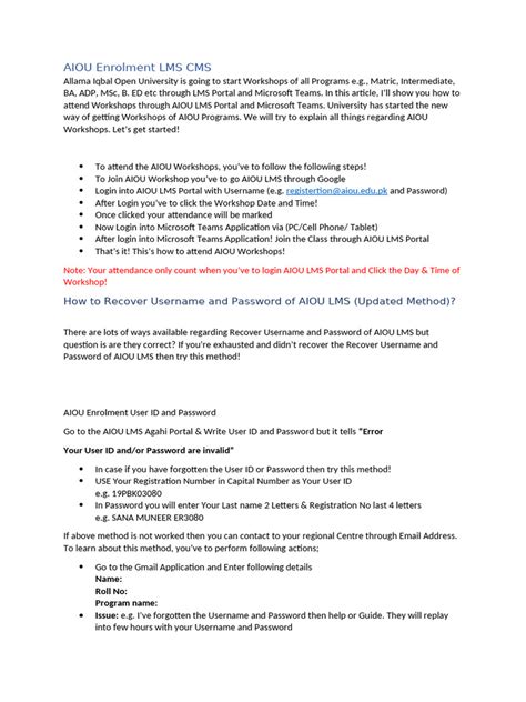 • Double-Check Your Information: Carefully double-check the username or email address you’re entering. Make sure you’re using the one associated with your AIOU LMS account.
