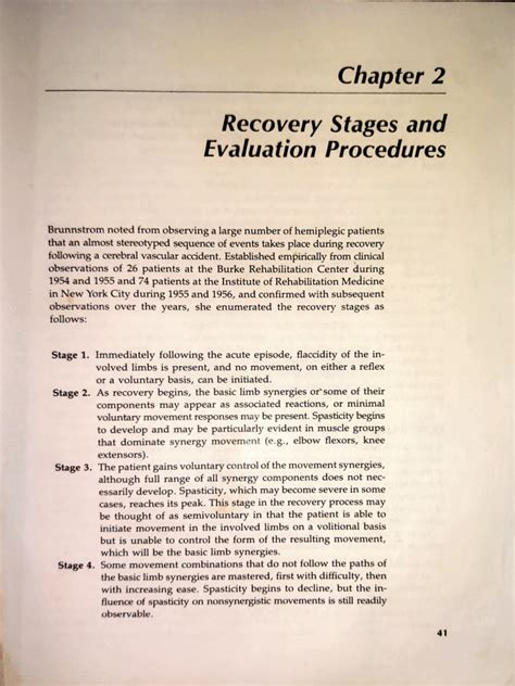 Alright, let’s get down to the nitty-gritty. The Brunnstrom stages are typically divided into six main phases, each representing a different level of motor control. It’s important to remember that not everyone goes through these stages in the exact same way or order, and some people might even plateau at a certain stage. Recovery is super individual, and these stages are more of a guide than a strict rulebook. We’ll go through each one: