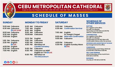 So, why is having a clear CMC church mass schedule so important, you ask? Well, for starters, it’s all about convenience and accessibility . In our busy lives, juggling work, family, and social commitments, knowing when mass is happening makes it much easier to fit it into our routines. It’s not just about showing up; it’s about being able to participate fully. When you know the schedule, you can prepare yourself mentally and spiritually, perhaps even setting aside some quiet time beforehand. For those who rely on public transport or have specific travel needs, a predictable schedule is a lifesaver. It allows for better planning, reducing the stress of rushing or missing out. Beyond the practicalities, attending mass regularly is a cornerstone of spiritual life for many. It’s a time for reflection, prayer, and receiving the sacraments. A well-defined schedule ensures that this vital spiritual nourishment is consistently available to everyone. Think of it as the heartbeat of the church community, keeping everyone connected and synchronized in their faith journey. It’s also about community. Mass is a gathering, a time to see familiar faces, and to feel a sense of belonging. Knowing the schedule means you know when this community time happens, fostering stronger bonds among parishioners. So, really, a mass schedule isn’t just a list of times; it’s a vital tool that supports spiritual growth, community building, and the overall accessibility of religious services for all who wish to attend. It’s the framework that allows the church’s spiritual life to flourish consistently.