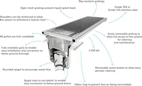 These are probably the most common type you’ll see. Slot drains are characterized by a narrow, linear slot opening at the floor level, which is usually covered by a grate or a removable slot cover. The actual drainage channel is located beneath this slot. They’re fantastic because they offer a very sleek, unobtrusive look, blending seamlessly with the flooring. The narrow slot means less surface area is exposed, which can be easier to clean around. However, the smaller opening means they can be more prone to clogging if large food particles aren’t properly scraped away before washing. They are ideal for areas where aesthetics are important or where you want to minimize tripping hazards. Think of them as the minimalist option in the drainage world. Their design allows for a continuous run along walls or across open floor areas, providing a versatile solution for directing water flow. Maintenance involves cleaning the slot itself and ensuring the channel underneath is clear. While they look clean and modern, it’s crucial to have a good pre-wash routine to prevent solids from entering the slot.