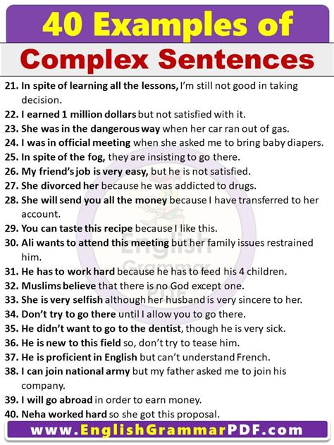 Now, things get really interesting, guys, as we move into complex sentences . These are fantastic for adding layers of meaning and showing the relationship between different parts of your ideas. A complex sentence has one independent clause (that complete thought we talked about) and at least one dependent clause. What’s a dependent clause? It’s a group of words that has a subject and a verb, but it cannot stand alone as a complete sentence. It relies on the independent clause for its full meaning. How do we create dependent clauses? We often use subordinating conjunctions. These are words like: because, since, after, although, when, while, if, unless, until , and many more. They signal that a clause is dependent. Let’s look at an example. Independent clause: “ She passed the exam .” Dependent clause: “ because she studied hard .” See? “Because she studied hard” has a subject (‘she’) and a verb (‘studied’), but it doesn’t make sense on its own. You’d ask, “Because she studied hard… what happened?” When we combine them, we get a complex sentence: “ She passed the exam because she studied hard .” Here, the dependent clause explains why she passed the exam. We can also put the dependent clause first: “ Because she studied hard, she passed the exam. ” When you start with a dependent clause, you almost always need a comma to separate it from the independent clause. Another example: “ Although it was raining, we went for a walk. ” ‘Although it was raining’ is the dependent clause (we can’t just say “Although it was raining” and expect it to be a full sentence). ‘We went for a walk’ is the independent clause. Complex sentences are super powerful because they allow you to show cause and effect, contrast, time relationships, and conditions. They make your writing more sophisticated and help you express nuanced ideas. For instance, you can use ‘when’ or ‘while’ to talk about actions happening at the same time: “ When the phone rang, I was cooking dinner. ” Or you can use ‘if’ to express a condition: “ If you finish your homework, you can watch TV. ” Mastering complex sentences is a big step in becoming a fluent English speaker and writer. It shows you can connect ideas logically and express yourself with precision. So, practice creating sentences with different subordinating conjunctions, guys. It’s a game-changer!
