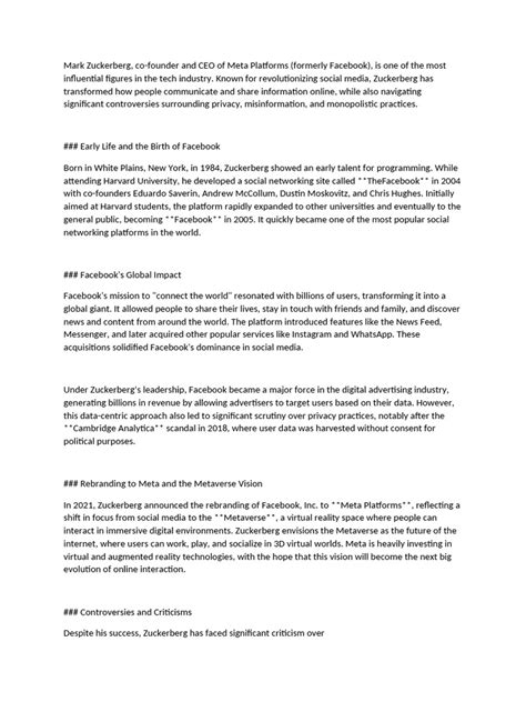 Mark Zuckerberg’s path hasn’t always been smooth sailing. He has faced numerous challenges , including privacy concerns, regulatory scrutiny, and public criticism. These challenges have forced him to adapt and to refine Facebook’s business strategies. One of the most significant challenges has been navigating the complex landscape of data privacy. Facebook has been criticized for its handling of user data. Zuckerberg has responded by implementing new privacy measures and by investing in data security. These measures are designed to protect user data and to comply with evolving regulations. The company has also faced increasing scrutiny from regulatory bodies around the world. Zuckerberg has addressed these challenges by working with regulators, by strengthening its compliance measures, and by investing in transparency. Facebook has been accused of spreading misinformation and of being used for political manipulation. Zuckerberg has responded by investing in fact-checking initiatives and by developing new tools to combat misinformation. These efforts are designed to ensure that Facebook remains a safe and reliable platform for its users. These challenges have required Zuckerberg to adapt and to show resilience. He has had to demonstrate a willingness to learn from his mistakes and to make changes to the company’s practices. His ability to navigate these challenges has been crucial to Facebook’s continued success. He has shown an understanding of the importance of public trust and has taken steps to rebuild trust with users. This has also allowed Facebook to maintain its leadership position in the industry.