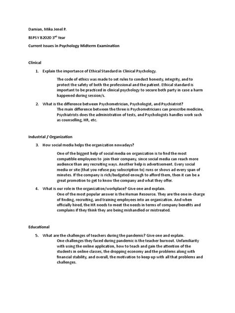 Exploring Current Psychological Cases