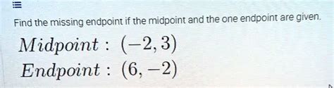 Alright, let’s put this into practice with a clear, step-by-step guide. This will make sure you don’t miss any crucial details when you’re solving these problems. Remember, finding the other endpoint involves using the rearranged midpoint formulas we just derived: \(x_2 = 2x_m - x_1\) and \(y_2 = 2y_m - y_1\) .
