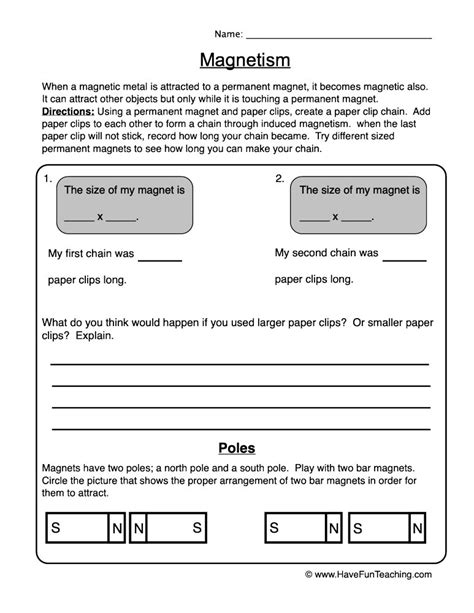 Let’s kick things off by getting our little scientists acquainted with the absolute basics of magnets . What are magnets, anyway? They’re these cool objects that can attract or repel certain materials. Most commonly, they attract iron, nickel, and cobalt. Understanding this fundamental property is the first step in a child’s magnet journey. Our magnet worksheets for kids are specifically designed to introduce these concepts in a super simple and visual way . Think about it: kids learn best when they can see, touch, and do. These worksheets will often feature clear illustrations of magnets and the objects they interact with. We’ll have activities where kids can sort objects into two categories: ‘attracted to magnets’ and ‘not attracted to magnets’. This is a fantastic way for them to actively participate and make their own discoveries. Imagine a worksheet with pictures of a paperclip, a coin, a plastic toy, a key, and a rubber band. The kids get to circle or color the items they predict a magnet will pick up. This encourages prediction and observation skills , which are crucial for scientific inquiry. We’ll also explore the concept of magnetic poles . You know, the North and South poles? When you bring two magnets together, they either snap together (opposite poles attract) or push apart (like poles repel). This is often demonstrated with simple diagrams or even a small hands-on experiment you can do at home with bar magnets. The worksheets might ask kids to draw arrows showing whether magnets will attract or repel based on how their poles are positioned. It’s all about making these abstract ideas tangible and understandable . We might even include a section on the magnetic field , that invisible area around a magnet where its force is felt. This can be illustrated with lines showing the field, helping kids visualize something they can’t normally see. Remember, the goal here is to build a strong foundational understanding without overwhelming them. These worksheets for kids are crafted to be fun, interactive, and educational, laying the groundwork for future scientific exploration. It’s all about making science accessible and exciting from the get-go!