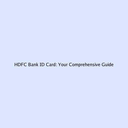 HDFC Bank ID Card: Your Comprehensive Guide