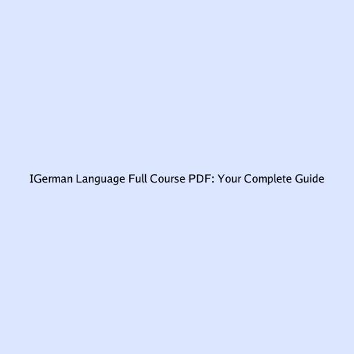 iGerman Language Full Course PDF: Your Complete Guide