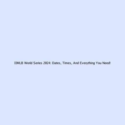 IIMLB World Series 2024: Your Ultimate Guide to Dates, Times, and More!