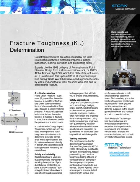 So, what exactly is fracture toughness? In simple terms, it’s a material’s ability to resist crack propagation. Think of it like this: imagine you have a piece of glass and a piece of rubber. If you introduce a small crack in both, the glass will likely shatter with minimal force, while the rubber will stretch and resist tearing much more effectively. That’s because rubber has higher fracture toughness than glass. More formally, fracture toughness quantifies the resistance of a material to unstable crack growth when a crack is already present. This is super important because, in the real world, no material is perfect . There are always tiny flaws, scratches, or imperfections that can act as starting points for cracks. If these cracks grow uncontrollably under stress, it can lead to catastrophic failure of a structure or component. The higher a material’s fracture toughness, the more stress it can withstand in the presence of a crack before it fractures. This property is especially vital in applications where safety and reliability are paramount, such as aerospace, automotive, and civil engineering. Understanding fracture toughness helps engineers select the right materials and design structures that can withstand the inevitable presence of flaws, ensuring they remain safe and functional over their intended lifespan. For example, in aircraft design, materials with high fracture toughness are used in critical components like wings and fuselage to prevent sudden failures due to pre-existing cracks. Similarly, in bridges, high fracture toughness steel is used to ensure the structure can endure the constant stress and potential crack growth over many years. Fracture toughness is not just a theoretical concept; it’s a practical measure that directly impacts the safety and durability of countless products and structures we rely on every day. Different materials exhibit different levels of fracture toughness depending on their composition, microstructure, and processing. Factors like temperature, loading rate, and environmental conditions can also influence a material’s fracture toughness. Therefore, accurate measurement and characterization of fracture toughness are essential for predicting material behavior and preventing failures.