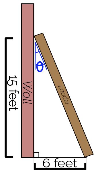 Therefore, the base of the ladder is 5 feet away from the wall. And, if we know the height and want to determine the distance, we use the tangent function: