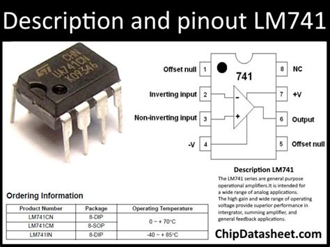 Okay, let’s get down to the nitty-gritty of the LM741 datasheet’s electrical characteristics . This is where we translate those seemingly cryptic numbers into real-world circuit performance. First up, we have Input Offset Voltage ( \(V_{io}\) ) . Think of this as a tiny voltage difference between the two input terminals that’s needed to make the output voltage exactly zero. Ideally, this would be zero, but in reality, there’s always a small offset due to manufacturing imperfections. For the LM741, this is typically in the range of a few millivolts. Why does this matter? In sensitive circuits, this offset can be amplified, leading to errors in your output. You might need external trimming circuits (using those offset null pins) if high precision is required. Next, let’s look at Input Bias Current ( \(I_{B}\) ) . This is the small DC current flowing into (or out of) each of the input terminals. Again, ideally zero, but the LM741 draws a small amount, usually in the nanoampere range. This is important when using large resistors in your feedback network, as this bias current flowing through them can create a significant voltage drop, causing output errors. Following that is Input Offset Current ( \(I_{io}\) ) , which is the difference between the bias currents of the two input terminals. It’s usually much smaller than the bias current itself. Then we have the superstars: Common-Mode Rejection Ratio (CMRR) and Power Supply Rejection Ratio (PSRR) . These are usually given in decibels (dB). A high CMRR (often > 70 dB for the LM741) means the op-amp is excellent at amplifying the difference between its two inputs while ignoring any signal that appears identically on both inputs (common-mode signals). This is crucial for rejecting noise picked up equally by both input lines. Similarly, a high PSRR (also > 70 dB) means the op-amp is good at ignoring fluctuations or noise on its power supply lines ( \(V_{cc}\) and \(V_{ee}\) ). Low PSRR means power supply noise can easily show up at the output, corrupting your signal. Finally, let’s touch on Gain-Bandwidth Product (GBWP) . This tells you how the op-amp’s small-signal bandwidth is related to its gain. For the LM741, this is typically around 1 MHz. This means if you operate it at a DC gain of 1 (a voltage follower), its bandwidth is 1 MHz. If you want a gain of 10, the bandwidth will be reduced to about 100 kHz (1 MHz / 10), and so on. Understanding these parameters is absolutely key to predicting and controlling your circuit’s behavior. They aren’t just numbers; they are performance indicators that directly impact accuracy, noise immunity, and frequency response.