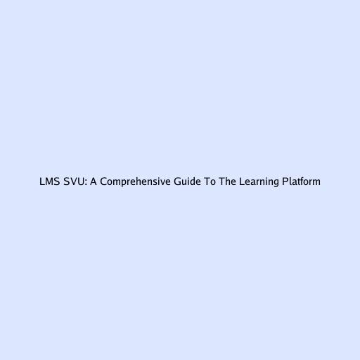 LMS SVU: A Comprehensive Guide To The Learning Platform