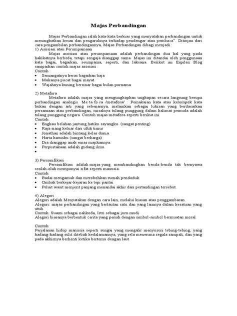 So, what exactly is a majas ? In simple terms, a majas is a figure of speech. Think of it as a creative way to use words beyond their literal meaning to make your writing or speech more impactful, vivid, and engaging. It’s like adding a special spice to your sentences to make them more flavorful! Indonesian literature and language are rich with majas , and understanding them can seriously level up your communication game. They help us paint pictures with words, evoke emotions, and convey complex ideas in a more relatable way. For instance, instead of just saying someone is very brave, you might say they have the heart of a lion . That’s a majas ! It’s not literal, but it powerfully conveys bravery. These figures of speech are not just for poets and novelists; they’re all around us, in songs, advertisements, everyday conversations, and of course, in sophisticated literary works. Learning about majas helps us not only appreciate the beauty of language but also become more effective communicators ourselves. We can use them to persuade, to entertain, to express deep feelings, and to make our points more memorable. It’s all about playing with words and their associations to create a desired effect on the reader or listener. The goal is always to go beyond the plain, everyday use of language and introduce an element of artistry and creativity. This can involve comparisons, exaggerations, personifications, and many other techniques, each serving a unique purpose in enhancing the message.