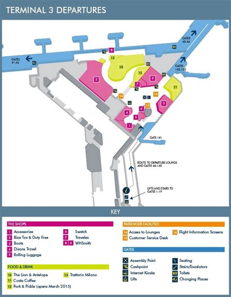 When you’re looking at a Manchester Airport Terminal 3 map , pay close attention to the different zones. After you clear security, you enter the main departure lounge. This area is generally divided into sections, often organized by gate numbers. You’ll find a variety of shops, including popular high-street brands and duty-free, as well as numerous food and drink outlets ranging from quick-service cafes to sit-down restaurants. Need to freshen up? There are restrooms and baby changing facilities conveniently located throughout. For those who need to stay connected, Wi-Fi is available, and charging points are scattered around, though it’s always a good idea to bring a portable charger. Business travelers or those looking for a bit more peace and quiet might want to explore the airport lounges. There are usually lounges accessible to passengers in T3, offering a more relaxed environment with complimentary refreshments and business facilities. Finding these lounges is straightforward with a map; they are typically well-signposted. Baggage reclaim is located on the arrivals level, and again, your map will show you the most efficient route to collect your luggage. If you’re meeting someone, the arrivals hall is the place to be, and the map will guide you to the designated meeting points. Don’t forget about essential services like currency exchange kiosks and information desks – these are usually marked clearly and are vital for any last-minute needs. Knowing where these are beforehand can save you a lot of time and hassle.