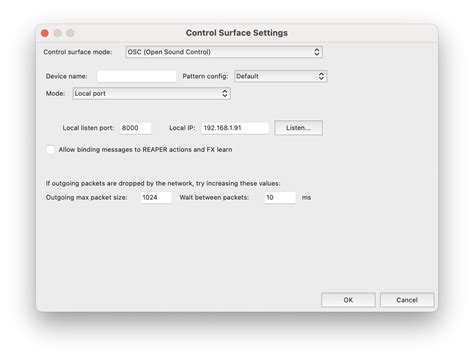 Configuring Reaper for OSC Communication