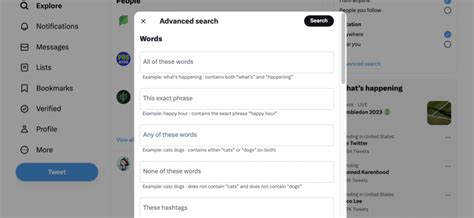Then, you have the “This exact phrase” field. This is super handy if you’re looking for a specific quote or a name that might be spelled multiple ways but you need the exact wording. Below that, you’ll find fields for questions like “Any of these words” and “This exact phrase.” This is where things get more powerful. You can combine keywords to create very specific searches. For example, searching for best coffee AND London in the respective fields will get you tweets that contain both terms.