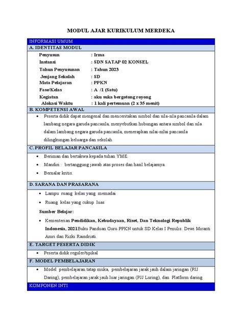 Jadi gini, guys, Modul Ajar PPKn SD Kurikulum Merdeka itu ibarat toolkit super lengkap buat guru. Di dalamnya udah ada semua yang kalian butuhin buat ngajar materi PPKn sesuai sama prinsip Kurikulum Merdeka. Bayangin aja, kalian nggak perlu pusing lagi nyari-nyari materi sana-sini, nyiapin aktivitas pembelajaran yang engaging , sampai bikin asesmen yang bener-bener ngukur pemahaman siswa. Semua udah ada, tinggal kalian adaptasiin sama kondisi kelas dan karakteristik siswa kalian. Kurikulum Merdeka ini kan fokusnya ke pembelajaran yang berpusat pada siswa, nah modul ajar ini hadir untuk memfasilitasi itu. Jadi, guru itu perannya bukan cuma sebagai penyampai informasi, tapi lebih ke fasilitator, motivator, dan pendamping siswa dalam proses belajarnya. Modul ajar ini dirancang sedemikian rupa supaya guru bisa ngasih pengalaman belajar yang bermakna buat siswa, yang nggak cuma hafalan, tapi bener-bener nempel di hati dan pikiran. Mulai dari tujuan pembelajaran yang jelas, materi ajar yang relevan dan menarik, sampai berbagai macam metode dan media pembelajaran yang bisa dipilih sesuai kebutuhan. Selain itu, di dalam modul ajar ini juga biasanya ada contoh-contoh kegiatan diskusi, proyek, simulasi, dan eksplorasi yang bikin siswa aktif dan kritis. Asesmennya pun dibuat beragam, ada yang formatif buat mantau kemajuan belajar siswa selama proses pembelajaran, ada juga yang sumatif buat ngukur ketercapaian tujuan pembelajaran di akhir. Intinya, modul ajar ini adalah sahabat terbaik guru dalam mewujudkan pembelajaran PPKn yang menyenangkan, bermakna, dan sesuai dengan semangat Kurikulum Merdeka yang berfokus pada profil pelajar Pancasila.