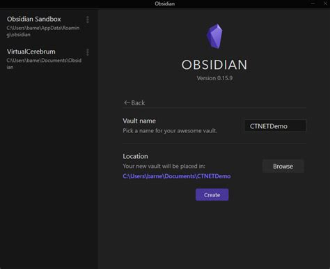 5. Choose a Location: This is a crucial step! Below the vault name field, you’ll see an option to select the location where your vault folder will be created on your computer. Click the ‘Browse’ button. This will open your computer’s file explorer. Navigate to the folder where you want to store your vault. It’s a good idea to create a dedicated folder for your Obsidian vaults, perhaps named ‘Obsidian Vaults’, and then create individual subfolders for each vault within that. This keeps things tidy!