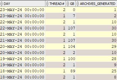 . If it’s not, you won’t be generating archive logs at all! You can check the current mode by querying the V