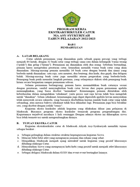 Setiap program pasti punya visi dan misi, dong. Begitu juga dengan program kerja catur ini. Visinya jelas: menjadikan catur sebagai salah satu cabang olahraga yang populer dan berprestasi di Indonesia. Misi-misinya pun nggak kalah seru, mulai dari pengembangan bibit unggul, peningkatan kualitas pelatih, sampai penyelenggaraan turnamen yang lebih banyak dan berkualitas. Peningkatan prestasi catur Indonesia adalah tujuan utamanya.