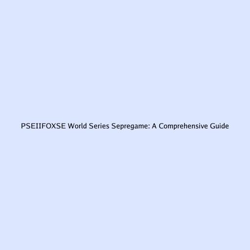 PSEIIFOXSE World Series Sepregame: A Comprehensive Guide