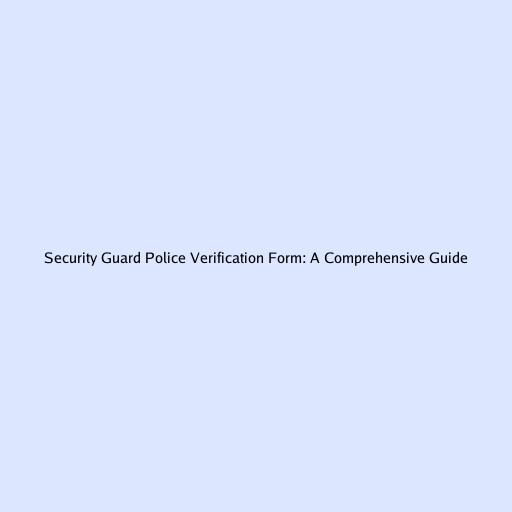 Security Guard Police Verification Form: A Comprehensive Guide