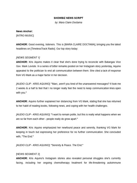 Showbiz News Script 2025