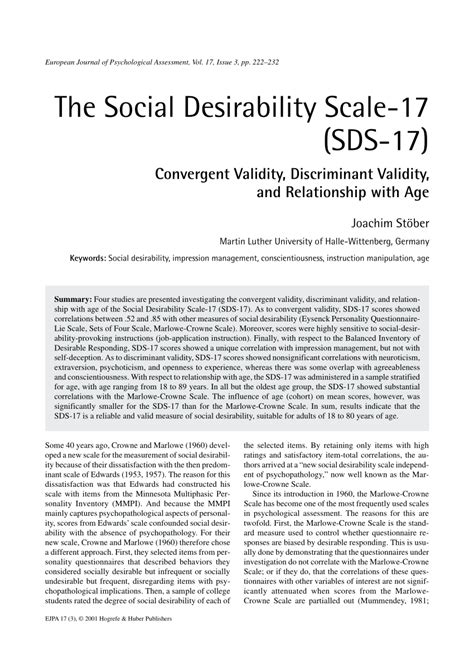 It’s worth noting that there are several different versions of the Social Desirability Scale out there, each with its own strengths and weaknesses. Some popular scales include the Marlowe-Crowne Social Desirability Scale (MCSDS) and the Balanced Inventory of Desirable Responding (BIDR). The choice of which scale to use depends on the specific research question and the population being studied. Researchers carefully evaluate the properties of each scale to determine which one is most appropriate for their needs.