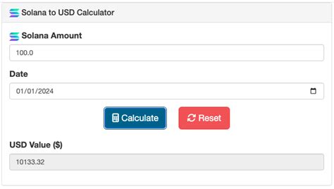 4. Calculation: The calculator multiplies your SOL amount by the fetched SOL/USD price.