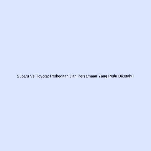 Subaru Vs Toyota: Perbedaan Dan Persamaan Yang Perlu Diketahui