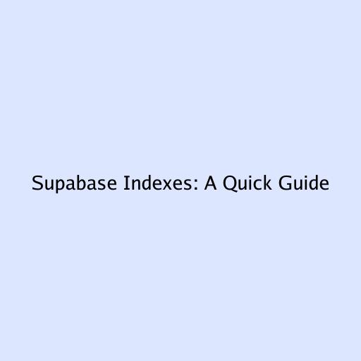 Supabase Indexes: A Quick Guide