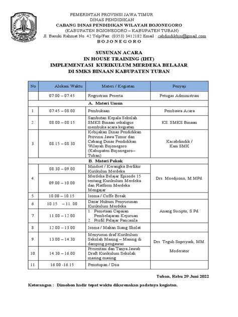 Hey guys! So, you’re looking to organize an In-House Training (IHT) for the Merdeka Curriculum at your junior high school (SMP), huh? Awesome! This is a super important step in making sure you and your fellow teachers are all on the same page and ready to rock this new curriculum. Getting the event flow right is key to a successful IHT, so let’s dive into a sample agenda that you can totally adapt to your specific needs. We want this training to be informative, engaging, and, most importantly, super helpful for everyone involved. A well-structured event means less confusion and more effective learning, right? We’ll cover everything from the opening remarks to the deep dives into curriculum specifics, ensuring that by the end of the day, everyone feels confident and equipped to implement the Merdeka Curriculum in their classrooms. Remember, the goal here is not just to tick a box, but to genuinely empower educators and foster a collaborative learning environment where best practices can be shared and refined. So, grab a cup of coffee, and let’s get this organized!