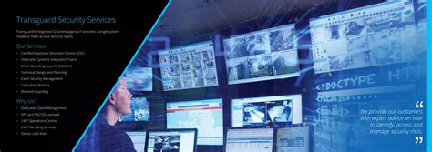 Beyond traditional security measures, Transguard also integrates advanced technology into their services. This includes CCTV surveillance, access control systems, and alarm monitoring. Images of their control rooms and technological infrastructure emphasize their commitment to leveraging cutting-edge solutions to enhance security. Their tech-savvy approach ensures that clients receive the most effective and up-to-date security measures available.