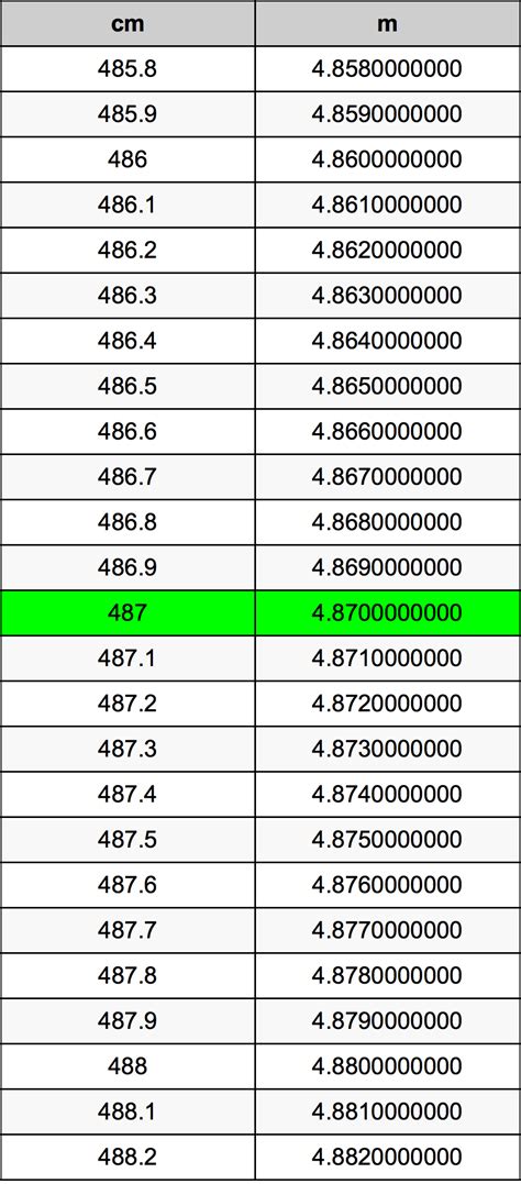 Alright, so we know 487cm is 487 centimeters. But how does that translate into units you might be more familiar with, like meters or feet? This is where the magic of the metric system really shines, guys! Converting centimeters to meters is a breeze. Since 1 meter equals 100 centimeters, all you need to do is divide the number of centimeters by 100. So, 487cm divided by 100 gives you 4.87 meters . See? Simple! Now, 4.87 meters is a pretty useful reference point. Think of it this way: a standard doorway is typically around 2 meters high, so 4.87 meters is about two and a half doorways long. Pretty neat, huh? Now, let’s tackle the imperial system, which uses feet and inches. This conversion is a bit more involved, but still totally doable. One inch is exactly 2.54 centimeters. So, to convert 487cm to inches, you divide 487 by 2.54. That gives you approximately 191.73 inches. To convert inches to feet, you divide the total inches by 12 (since there are 12 inches in a foot). So, 191.73 inches divided by 12 gives you roughly 15.98 feet . That’s about 16 feet! To give you a visual, imagine parking four standard-sized cars end-to-end; that’s roughly the length of 16 feet. So, 487cm is equivalent to 4.87 meters or approximately 16 feet. This conversion power is what makes measurements understandable across different systems and even across different countries. Being able to switch between metric and imperial units like this is a crucial skill for anyone dealing with international projects, travel, or even just understanding product specifications from different regions. It bridges the gap and makes information accessible to a broader audience, ensuring that everyone can visualize and comprehend the dimensions being discussed. It’s all about making measurements relatable and practical for everyday use.