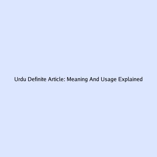 Urdu Definite Article: Meaning and Usage Explained