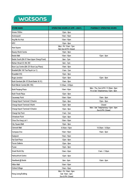 Hey guys! So, you’re wondering about the operating hours for Watson in Sandakan, right? Well, you’ve come to the right place! Figuring out when your favorite pharmacy and beauty store is open can be a real lifesaver, especially when you’re in a pinch or just planning your shopping trip. Watson is a super popular spot for all your health and beauty needs, from daily essentials to those special treats. Knowing their hours helps you make the most of your visit without any hassle. This article is all about breaking down the operating hours for Watson outlets in Sandakan, plus some extra handy info you might need. We want to make sure you guys can pop in whenever it suits you best, whether it’s a quick grab-and-go or a leisurely browse.