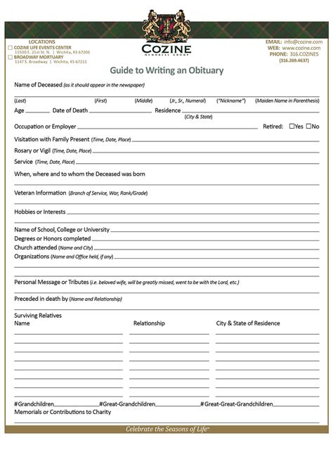 • Be Concise: Keep the obituary concise and focused on the most important details.